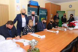 Dziś w siedzibie Powiatowego Centrum Pomocy Rodzinie w Inowrocławiu dyrektorzy domów pomocy społecznej funkcjonujących na terenie Powiatu Inowrocławskiego podpisali protokoły odbioru pościeli dla swoich podopiecznych.