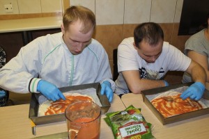 Podczas pierwszych z zajęć przygotowano pyszną pizzę domową. Na samo słowo pizza, każdemu święcą się oczy. Chętnych więc do jej przygotowania nie brakowało. Grupa bardzo chętnie zabrała się do pracy. Ostatecznie przygotowane zostały w dwóch smakach, pizza z szynką i wegetariańska. Podczas kolejnego spotkania grupa przygotowała pyszne gofry z dodatkami wykorzystując do tego gofrownicę zdobytą jako nagrodę w Kulinariadzie w DPS Tarnówku. Uczestnicy kuchenki aktywnie brali udział w pracach nad tym deserem. Na smaczne efekty ich pracy w postaci smakowitych gofrów z wszelkiej maści słodkimi dodatkami długo nie trzeba było czekać.